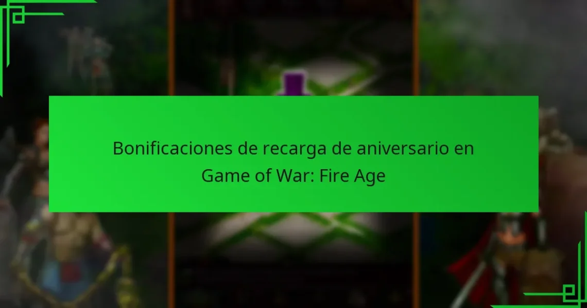 Los Bonos de Recarga del Aniversario en Game of War: Fire Age ofrecen a los jugadores recompensas exclusivas por realizar compras dentro del juego durante el evento de aniversario. Estos bonos proporcionan recursos valiosos y objetos que pueden mejorar significativamente la jugabilidad y apoyar la progresión del jugador. Para aprovechar al máximo estas recompensas, los jugadores deben cronometrar estratégicamente sus recargas y elegir los mejores paquetes disponibles. Key sections in the article: Toggle ¿Qué son los Bonos de Recarga del Aniversario en Game of War Fire Age? Definición de bonos de recarga del aniversario Tipos de bonos ofrecidos durante el…