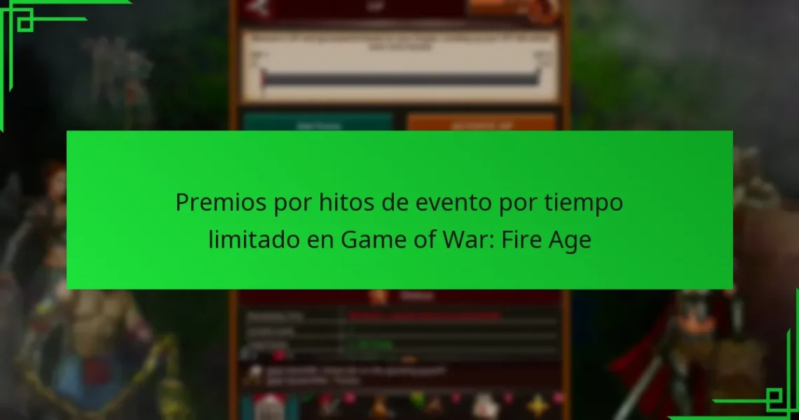 Los premios de hitos de eventos de tiempo limitado en Game of War: Fire Age ofrecen a los jugadores la oportunidad de ganar recompensas valiosas al completar objetivos específicos durante eventos especiales. Estos premios pueden mejorar significativamente la jugabilidad, proporcionando recursos esenciales y objetos poderosos que mejoran el rendimiento de un jugador. Para maximizar los logros, los jugadores deben centrarse en la planificación estratégica y la gestión efectiva de recursos durante el evento. Key sections in the article: Toggle ¿Qué son los premios de hitos de eventos de tiempo limitado en Game of War Fire Age? Definición y propósito de…